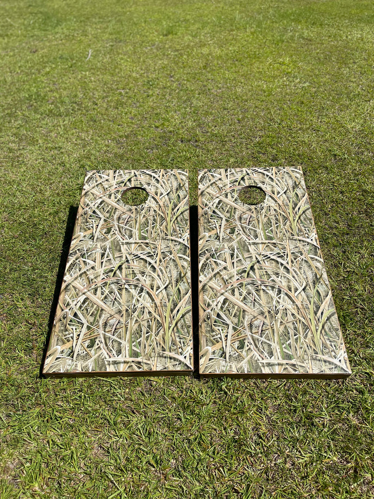 1- set of regulation sized cornhole boards painted/stained & varnished with vinyl graphics (2- boards)